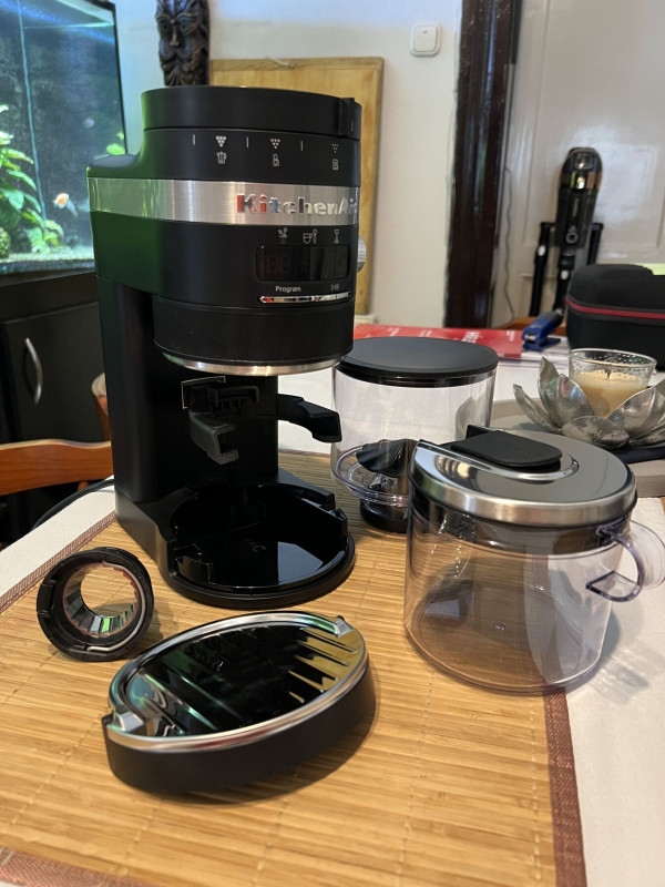 Tegnap a helyi Intersparban leltem egy elvileg jó ajánlatra. KitchenAid Artisan kávédaráló (Coffe Grinder 5KCG8433. Le volt értékelve 30%-al és 20%-os kupon is használható volt hozzá, így jutottam hozzá 56e Ft-ért. Mellé adott jótállási jegy szerint 5év a jótállás ideje.