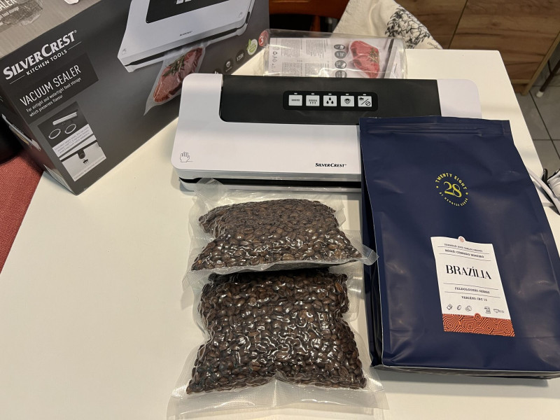Beszereztem a lidl-be egy vákuumos fóliahegesztőt, most már nem áll az 1kg-os kiszerelés a polcon, hanem elporcióztam 250gr-onként, így olyan 2-3 hét alatt elfogy egy adag, többi pedig a fagyasztóban van, kisebb porcióra nincs szükségem.