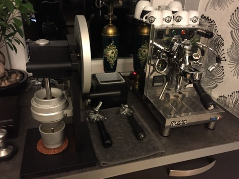 A daráló is csak azért került képbe, mert amikor kezdtem vele foglalkozni, még tényleg nem volt a piacon home baristáknak szánt "high-end", vagyis nagy késekkel működő motoros készülék, és beugrott ez a külső kés forgatása ötlet. Persze kiderült, nem egy sima ügy ez sem. Szerintem valamennyire kivakartam a konstrukciót a nyavajáiból, és vállalható műszaki megoldásokat tartalmaz, de mivel nagyon szordínóban készült, eltelt 3 év, és bedurrant ez a piac is, már nehéz labdába rúgni kívülről. A Kafatek ma a legügyesebb megoldás, ők nem vacakoltak azzal, kúpos vagy síktárcsás legyen, megcsinálták mindkettőt a lehető legegyszerűbben. Ahogy a HB-n olvasom, a baristák meg is veszik előbb - utóbb minkét verziót. -