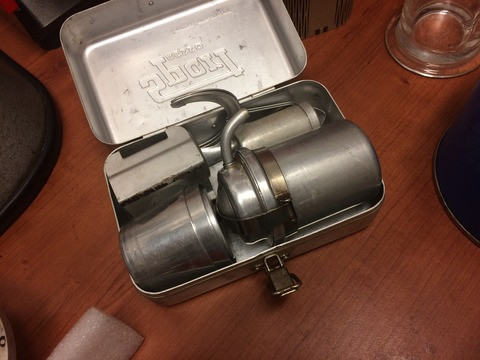 Egy 4 személyes Brikkával szoktam kávét főzni, amihez Hario Skertonnal darálok.