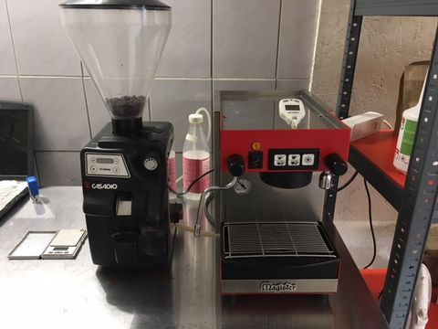 Amúgy tök jó kis masina, nyugodt, nem égeti a kávét, talán még picit alul is lövi ha sok csapolás megy egymás után. Két napig próbálgattam, az első random húzás ilyen lett vele, mint a képen. Jól járt volna vele ha megveszi valaki innen a fórumról akár otthonra is, kép alapján nem volt túl kívánatos jelenség, de élőben ez a piros/inox kombináció nagyon jól festett, főleg a pörigép mellett!