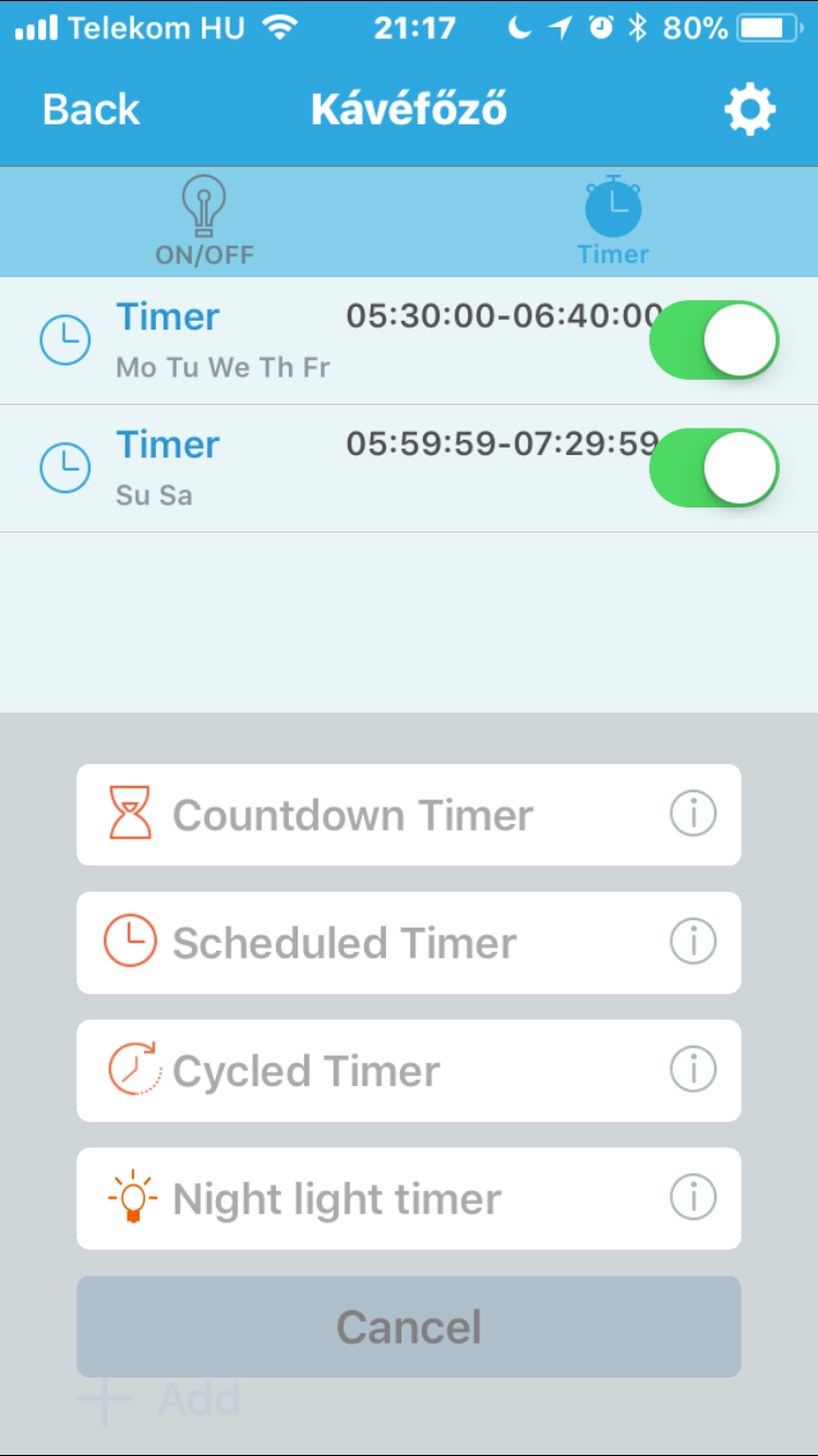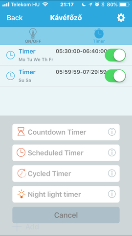 sz.zs.: A countdown timer lenne az, nem? Ez jó, hogy be tudod lőni, hogy mettől meddig, ha nem tudom előre, hogy 5-kor, 6-kor vagy 7kor kelek/vagy éppen érek haza, akkor ez nem működik