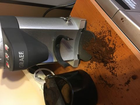 A darálás utáni maradékot a garatból egy kisebb csavarhúzó műanyag nyelével "kikocogtatom" (kb.2-4mp alatt).