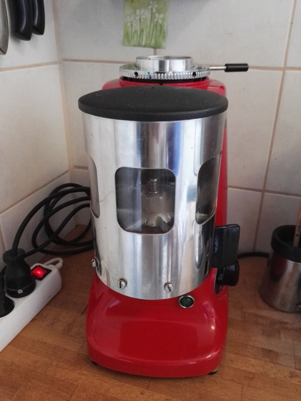 Mazzer SJ gyári piros festéssel eladó. 2 éve vettem akkor volt késcsere benne, otthon használt, azóta kb. 25 kg ment át rajta. Babtartály és egyebek is megvannak.