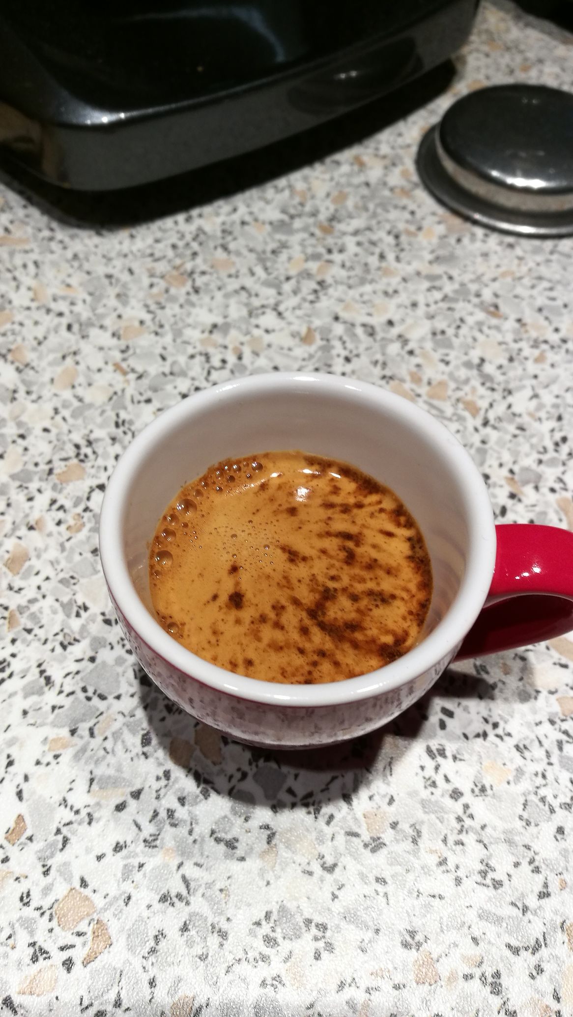 Elsőre a Spicynál alkalmazott őrlő beállítás túl finomnak bizonyult így kb 37mp alatt jött le 27g viszont nem spriccelt.