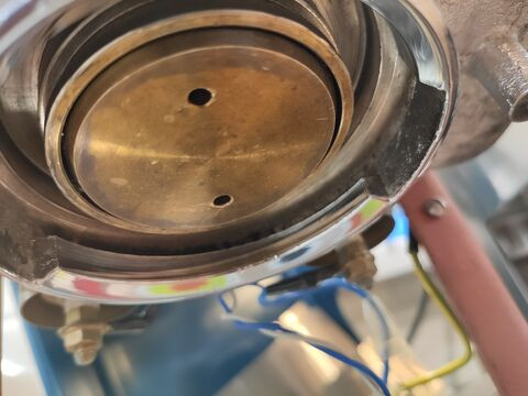 és akkor a kérdés, sajnos képekről ez elég esélytelen, de hátha. ez a kék mini gaggia, nagyon első széria, full réz minden, a fűtőszál is, a fűtőszál korongjai is stb. viszont, vajon mi ez a bevonat rajta? rávágnám, hogy króm, de nem tűnik annyira keménynek, illetve csiszolásnál más színt vesz fel, a króm "sárgássága" eltűnik és inkább ilyen hideg, alumínium színhez hasonlít (ezt próbáltam meg fotózni). másrészt, elég alaposan oxidálódik, sok fekete folt van rajta.
