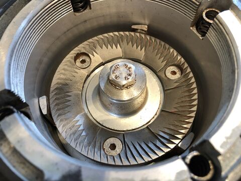 Amennyire lehet teljesen szétszedtem, a külső és a belső kést azt nagyon szépen le is tudtam tisztítani, de a henger belső falához nem férek hozzá rendesen és nem tudok nyomást kifejteni rá, hogy leszedjem pl egy kefével.