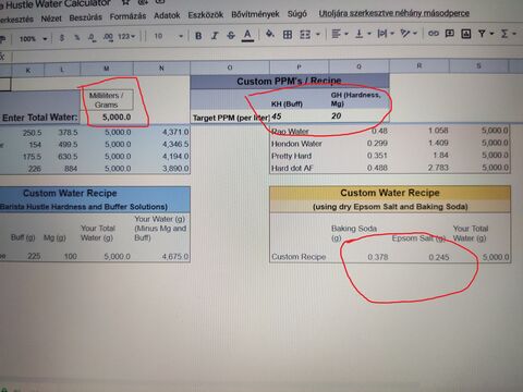 20GH és 45KH, ami 0,378 szóda és 0,245 keseűsó, 5 liter vizbe. Legközelebb ezt nézem meg. -