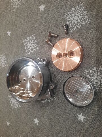 Fúrni nehéz,könnyen félre megy.Elő kell fúrni kis lépcsőkben.Gaggiára elég könnyű megcsinálni a la marzocco gyári üreges csavarjával a teljesen azonos vízterítést.Két ünnep közt csinálok,csak kéne egy gaggia kipróbálni.