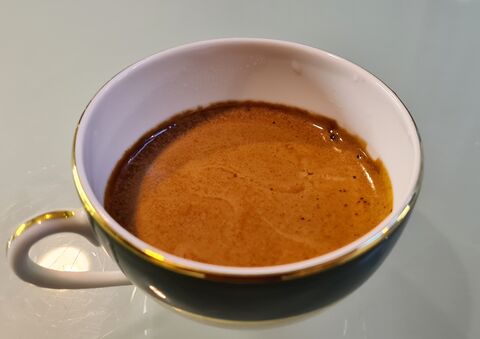 Etno Cafe - Abyssinian Highland - első próba. Comandante C40 10-es állásban, de picit lassan indult meg, következő próba 11 lesz. Viszonylag sötét, meg is lepődtem. Ennek megfelelően átmenetet a két világ között. Nekem már az első kávé is bejött belőle, nem az a spriccelős fajta.