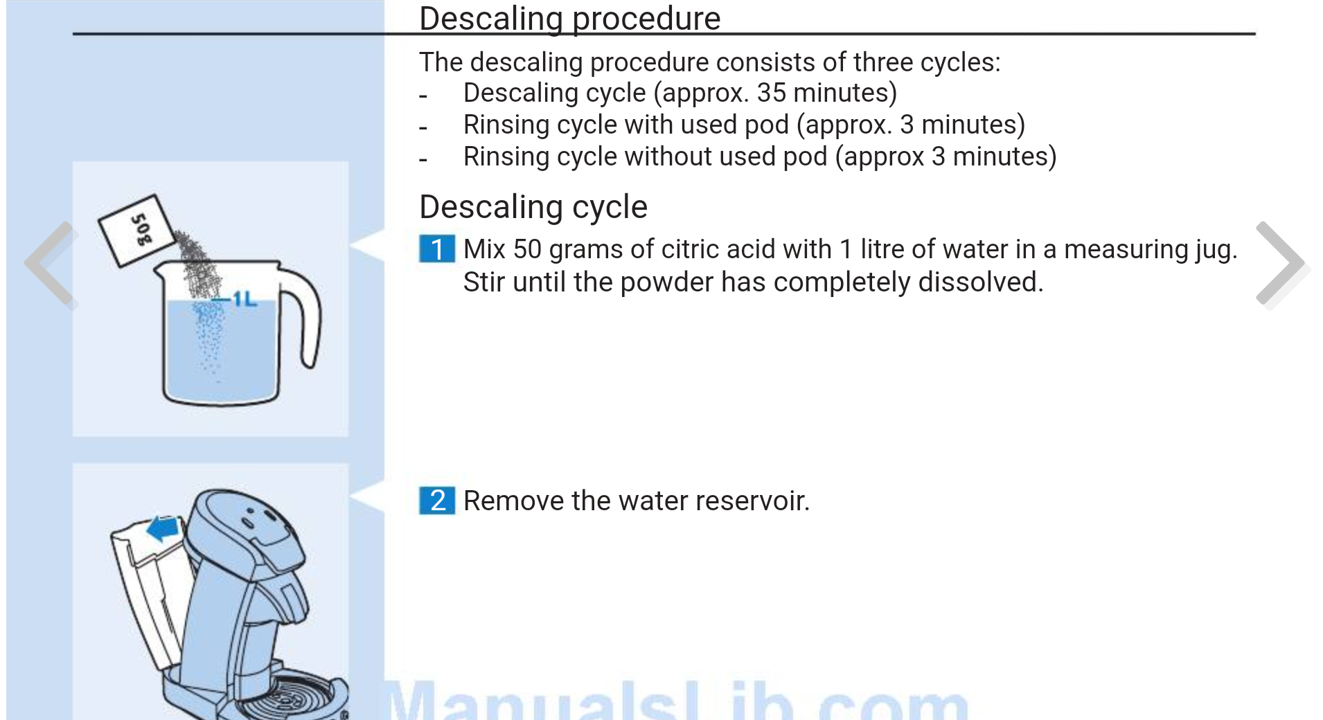 ) Senseo 7850-es kávéfőző használati utasítása 1 liter vízhez 50 gramm citromsavat ír. Azzal kell a vízkőtelenítés programot indítani. -