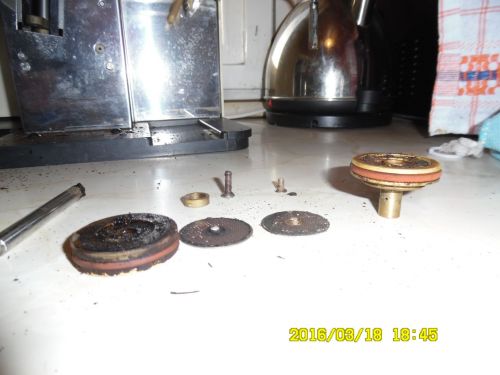 Gaggia Coffee + Cunill Marfil (ajándék taknyoltdoserless). A babtartály tetejét már nem találom, pedig emlékszem rá, hogy itt van valahol a lakásban. Új kések vannak benne, olyan 3-400 gramm kávé ment át rajta. A Gaggia-t teljesen szétkaptam, a linken találtok is pár képet. Kapott új szilikoncsöveket (kivéve a visszafolyó), Kar -és bojlertömítést. Illetve láttam még benne két o gyűrűt, az egyiket a bojler és a vízcső közötti kis darabban, a másikat meg a fejben lévő csavar alatt, azokat is kicseréltem. Próbáltam olyan szépre megcsinálni a bojlert, mint amiket szoktam itt látni, több kevesebb sikerrel szerintem megugrottam a problémát, bár nagyon picike vízkő maradt az aljában, de tovább nem akartam citromsavazni, mert szép állapotban van, nem kráteres. Gyári karral, szimpla és duplaszűrővel. Igény esetén lali.hu féle tamper (nem tudom, hogy most mennyi az ára, de új ár -30%). A rozsda már megkezdte.