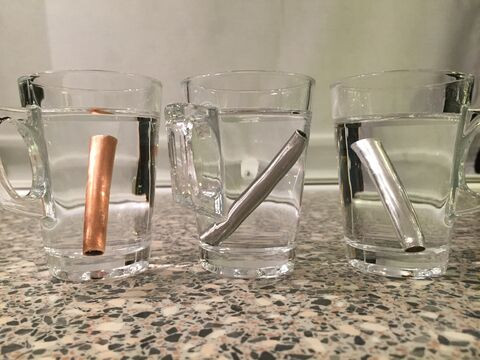 Elővettem 3poharat, beletettem egy réz, egy rozsdamentes acél és egy tiszta ezüst pipacsövet.