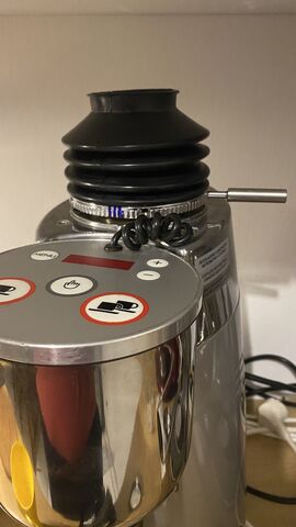 miután Fragola eloszlatta a kételyeimet, fenntartásomat a pumpálással kapcsolatban - mondván hogy maximum az állító gyűrű menetéhez tud bemenni a kávépor a rugó fészkeken keresztül - vettem a Homasitában egy gumiharangot. Úgy állítottam be az időzítőt, hogy a kávé babok leőrlése után még 5-6 mp-ig forogjon és ez alatt az 5-6 mp “üresjárat” alatt hármat, négyet rápumpálva nem kell utána sem ráindítani, sem sepregetni. Tized grammra kiadja amit betöltöttem