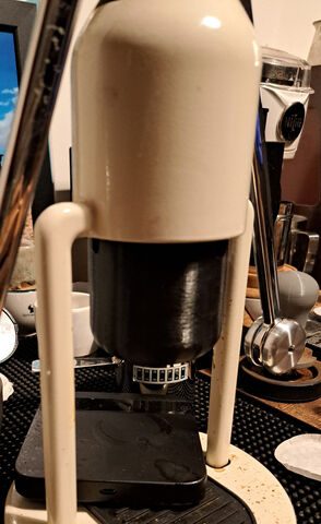 Szabad kézzel kivehető a robot alól a pohár, szárazra törlöm a dugattyút, a jobb karon látsz mágnest, az megtartja felső állásban a karokat, ez egyrészt gyorsítja majd a kosár felhelyezését, másrészt elvileg egy kicsit lassítja a dugattyú visszahűlését a "hősapka" miatt.