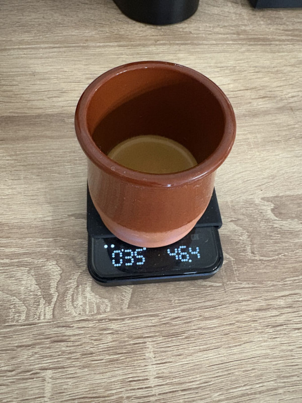 Kézzel is nyugodtan meg lehet tartani, ha túl durva lett. Átáztatod a pogit teljesen, ezt tedd meg minél gyorsabb határozott mozdulattal, hogy lehetőleg homogén legyen, majd tartsd kézzel, hogy csak minimális csöpögés legyen (0.3-1 bar között lesz, csészében max 3-5 gramm kávé). Ez egy blooming, majd mehet át rajta pár mp alatt w többi víz. Ezzel a nagyon durva őrleményt is simán meg lehet menteni. Ezekkel a könnyen keseredő kavekkal max alacsonyabb vízhőfokkal lesz jó, de sima turbo shottal ez is oké. Robotot ne melegítsd elő, teljesen felesleges, csak tovább keseredik majd a kávé. Próbáld ki nyugodtan 90-95 fok közti vízzel felöntve, nem ördögtől való ez sem.
