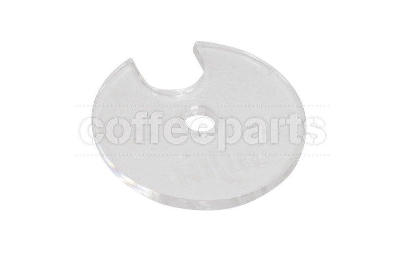 De aztán végül átlátszó (akril?) csomagolóanyagból vágtam egy 70 mm-es korongot, a közepébe egy 40 mm-es lyukkal. Így visszatartja a törmeléket meg a kávébabokat is.