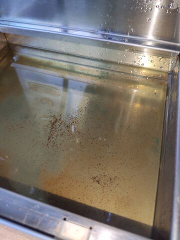 Az a baj, hogy ez biztosan nem lerakódás, vagy kávé. Tapintásra olyan érzet, mintha például bicikli szerelésnél olaj kerül a bőrre és próbálja az ember lemosni, ízre pedig erősen fémes a jellge. Felhívtam a szervízt, alapos átmosást és/vagy vízkőtlenítést javasoltak. Külföldi fórumokon megtaláltam ugyanezt a jelenséget leginkább Bianca és MaraX gépeknél, azt írták, hogy a nagyon alacsony ásványi anyag tartalmú víz, ami leül(?) a gőz bojlerben és lerakódást(?) okoz, ez válik láthatóvá ha az ember 1-2 hét után újra megnyitja a forró víz csapot. Több tucat hasonló hibát jeleztek emberek (szürke víz, mintha szenet oldottak volna benne, illetve apró darabkák, amiket fog a mágnes), és kivétel nélkül mind mókolt vizet hasaznált. Gondolom sosem fog kiderülni az ok, a bojlerbe nem látok bele. Mindenesetre most állok neki a mosásnak, kíváncsi vagyok, mi lesz az eredmény.