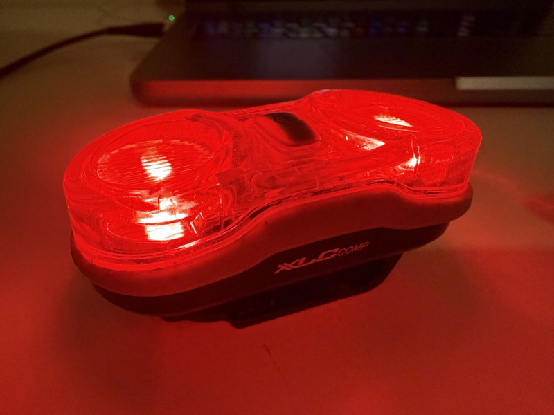 Tudtam hogy valaki kiszúrja. Bele is akartam írni. A bringás kabát zsebére tűztem egyet, mert már nem akartam húzni az időt a szereléssel. Egy régebbi XLC lámpa 2 leddel. 2 db AAA Eneloop akkuról hajtom. Jó fénye van.