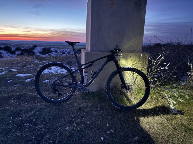Gurultam egyet. Felmentem itt Kőszárhegynél a Szár-hegy csúcskőhöz. Majdnem el is taknyoltam a jegesre letaposott bekötőúton a krosszpályánál. Jó ez a gép. Persze a szobában belőtt kezelőszervek rohadtul nincsenek jó helyen. Azokat még állítani kell. Dropper szerintem nem a barátom továbbra sem. Ezt a lötyögést és kattogást nem bírom megszokni. Nem is fogom használni, mert nem megyek olyan stílusban, hogy kelljen. Az előző fully-n sem használtam. A CX után ez egy repülő szőnyeg. Tök jó. Elsőre durvának tűnt a kormány drop a nyereghez képest. Ennek ellenére eléggé csopperesnek érzem még. Pedig a CX-ben nincs ekkora esés mint ezen. Ami még jó, hogy belefér mindkét kulacstartóba a 700 ml kulacs. Van előnye legalább annak, hogy magas vagyok.