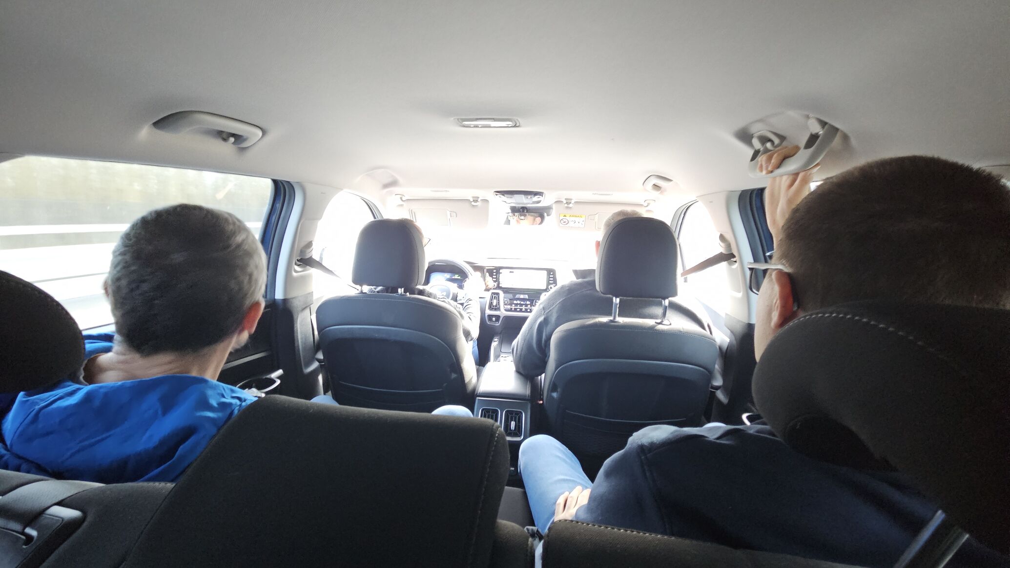 Anyósülésen nem tudom ki ül, de meg van billenve jobbra a kocsi....