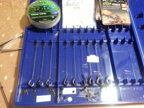 többféle hosszúságú előkét kötök, többféle horoggal. Method módszerhez fonottból 7-8 cm hosszban, etetőkosaras horgászathoz 10 cm, feederhez monofilból 15-30-45-60 cm-es előkéket kötök, rakósbotos pecához azt hiszem 17 cm, matchbotozáshoz 22 cm-es előkéim vannak.
