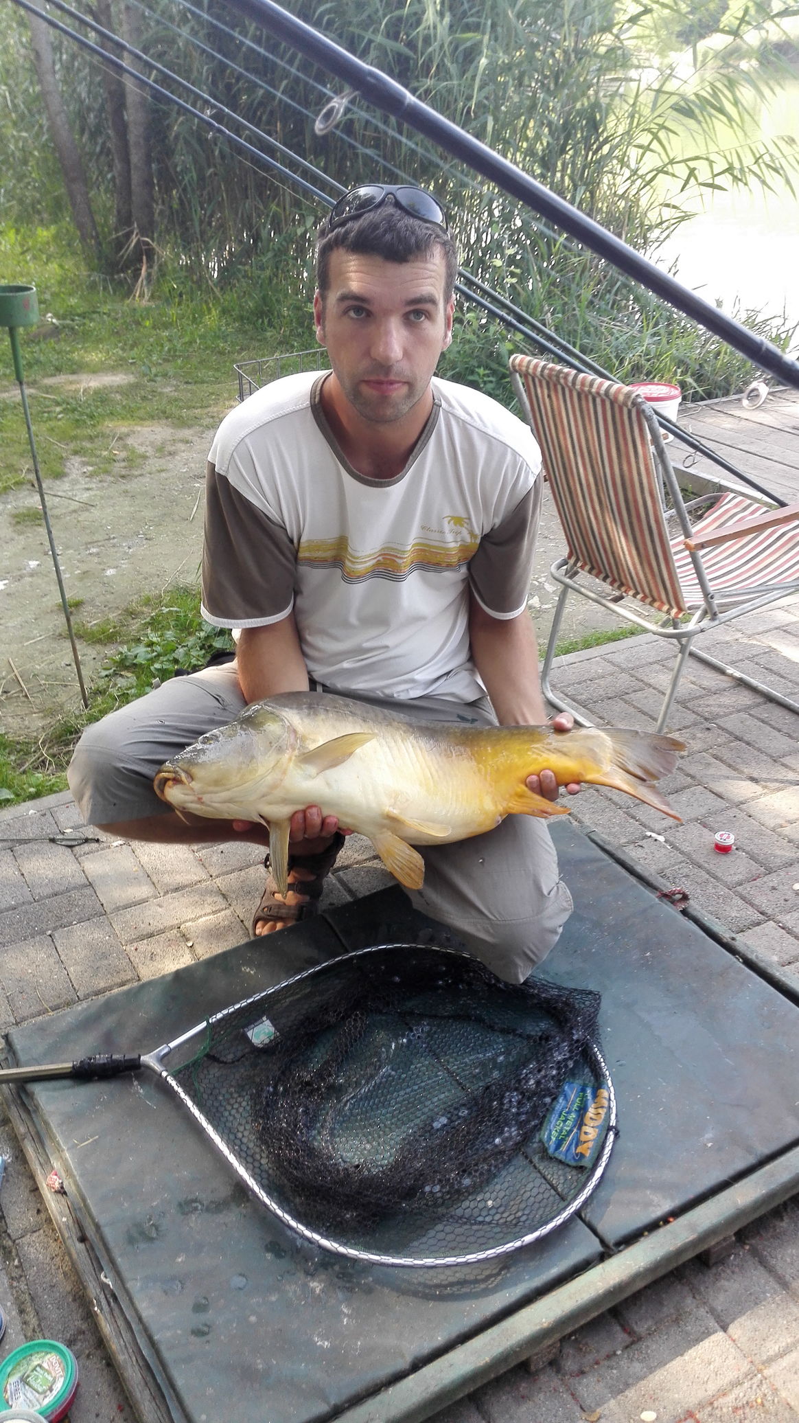 Romániai nyaralásból "sikeresen" hazaérve, már nagyon horgászhatnékom volt, így lementem az egyesületi tóra. 2 kiló pelletes fekete és fokhagymás gumikuki volt a kombó. Első hal 4-es forma amúr, aztán jött egy 2-es ponty, pár kárász, keszeg, majd lassú, de erős húzásra megjött az idei legnagyobb halam, egy 8-cas pikkelyes. Walter wc2 megette reggelire