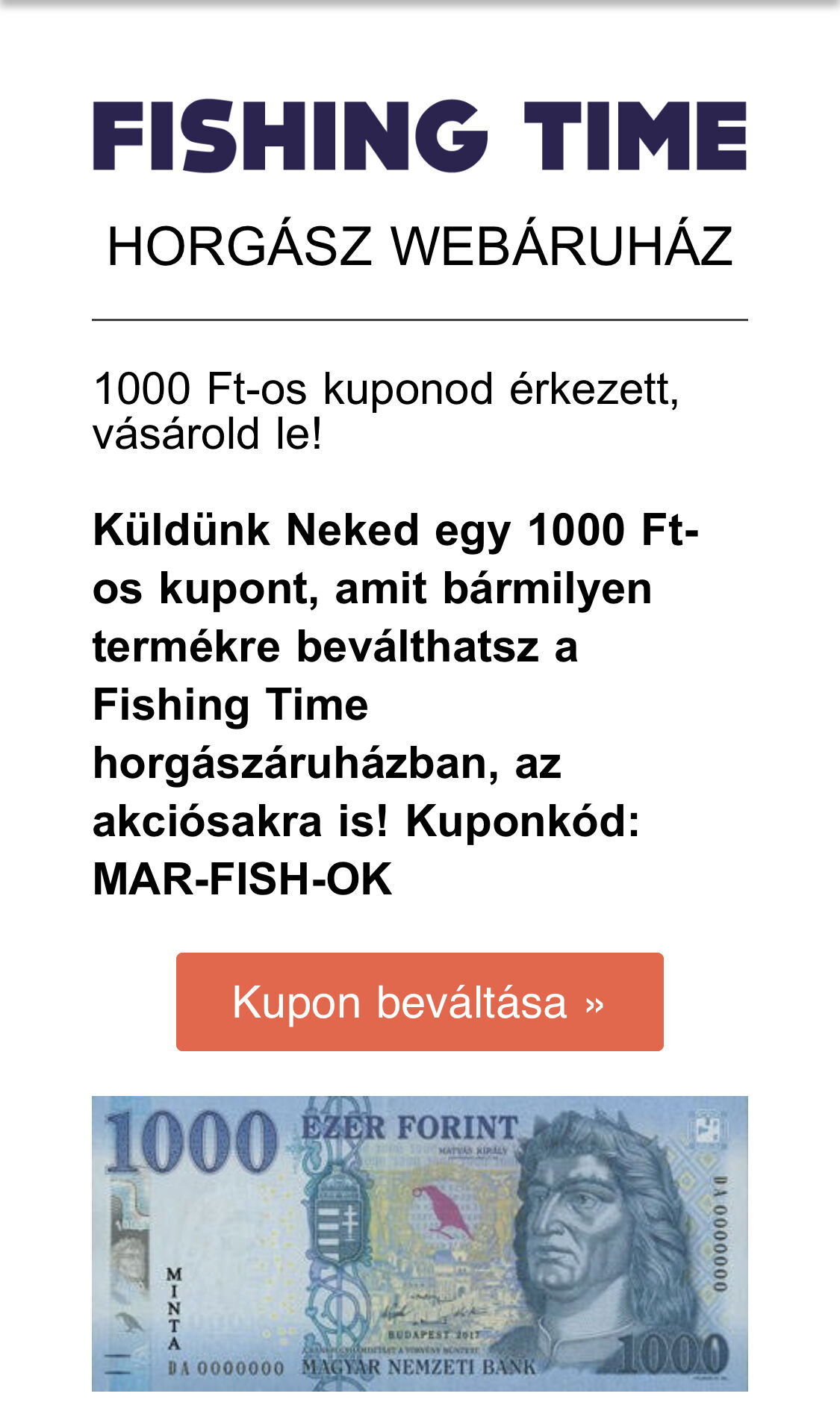 Melóban nyilatkozni kellett, hogy milyen formában kérem a szépkártyára a pénzt. Megdumáltak, hogy kérjek valamennyit szabadidős zsebbe, hogy majd azon veszek horgászcuccot. Most van 50 ezrem erre a célra, 2 órája bújom a webshopokat, ahol elfogadják, de rá kellett döbbennem, hogy semmire nincs szükségem