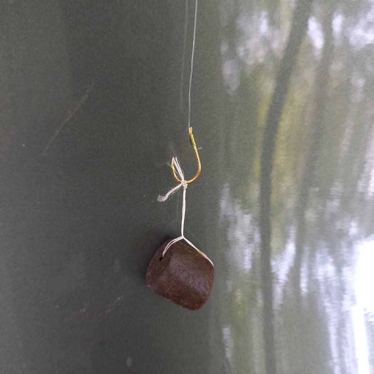Ha nem kötsz hajszálelőkét akkor is ennél elegánsabb megoldás, hogy karikát kötsz a horogra és arra fűzöd fel selyemmel. Nem kell hozzá ütköző meg semmi, egy 3-4 centi selymet a végén megégetsz öngyújtóval és ahogy megolvad a gyújtó oldalával egyszerűen rányomod a pellettre, ahol kilapul, kihűl és kész. Tuti rajta marad