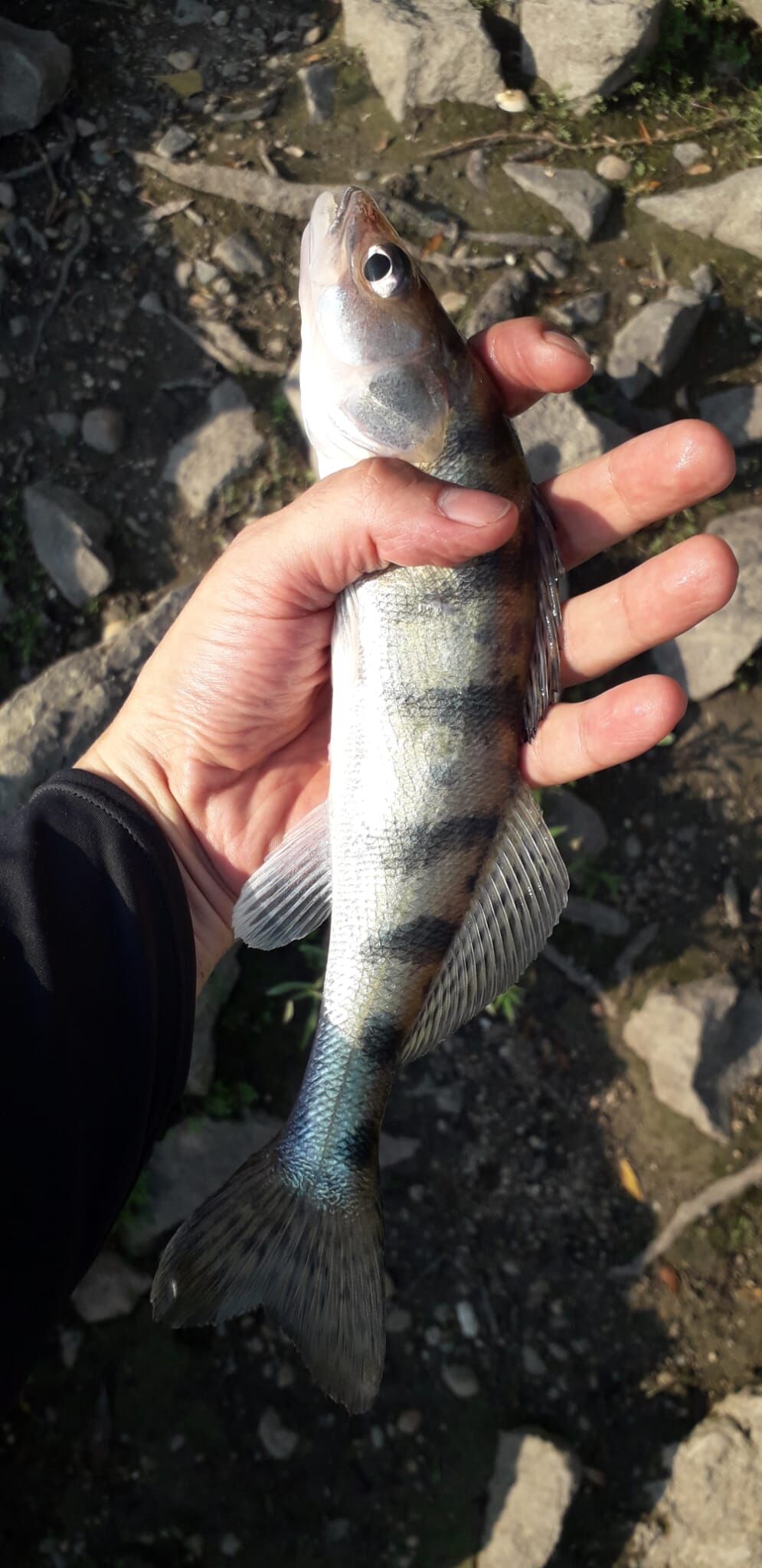 Első határozott odakoppnál, na mondom tényleg itt vannak, aztán sikerült másodikra fogni ezt a kis kövest onnan:Megint csak néhány kapás elteltével megakaszottam egy második valamit is, ez egyértelműen nagyobb volt, lassan húzta a féket is szakaszosan miközben fárasztottam, hajlott a bot ahogy kell, örültem, hogy végre újra egy nagyobb köves, talán süllő(bár nem igazán volt fejrázás csak pumpálás), aztán féltávon lemaradt