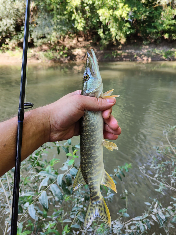 Mondjuk domiból jóval kevesebb jött, mint számítottam, de ezt én mással magyaráztam. Itt sokkal több a lassú, langós rész, amit kedvel a csuka, mint pl. a szabályozott, kicsit csatorna-szerű balassagyarmati részeken, ahol meg domiból és balinból van több. Viszont ugye a domi, balin jó szemű halak (ellenben a pici csukákkal, meg azok amúgy is mindenre ráugranak), szóval előfordulhat, hogy amúgy fogtam volna több domit, csak kiszúrtak a sapka miatt...? Akár. Lehet elhagyom a sapit, vagy veszek sötétebb darabot (nyáron a fehéret szeretem, nem szívja a meleget).A vidin azért vigyorgok, mert amikor felemeltem a csuxit eszembe jutott, mekkora flamet váltottam ki itt a topikban, de addigra már megvolt a puszi is