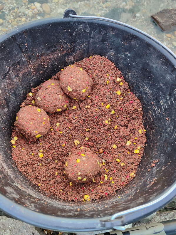 A versenyen alapvetően 2 etetést csináltam. Az egyik egy kisebb “átlag” pontyos etetés volt rövidebb távon, míg a másik etetést úgy állítottam össze, hogy ha jár arra nagyobb testű hal is, akkor ezek a méretű példányok is találjanak a kedvükre valót.