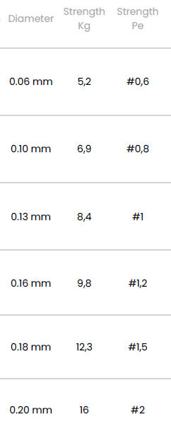 Nem tudod összeegyeztetni az értékeket, pedig ugyanaz a zsinór.PE szám az egyetlen, ami konzisztens lesz piactól és gyártótól függetlenül. Apró különbség maximum a fonás szorossága és a bevonat miatt lehet, de ugyanolyan vastag szálakból lesz fonva.