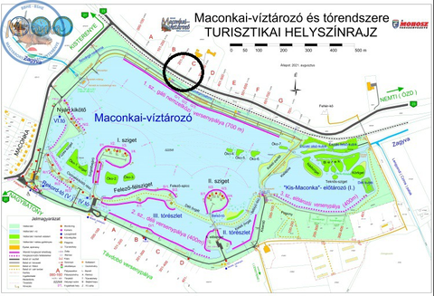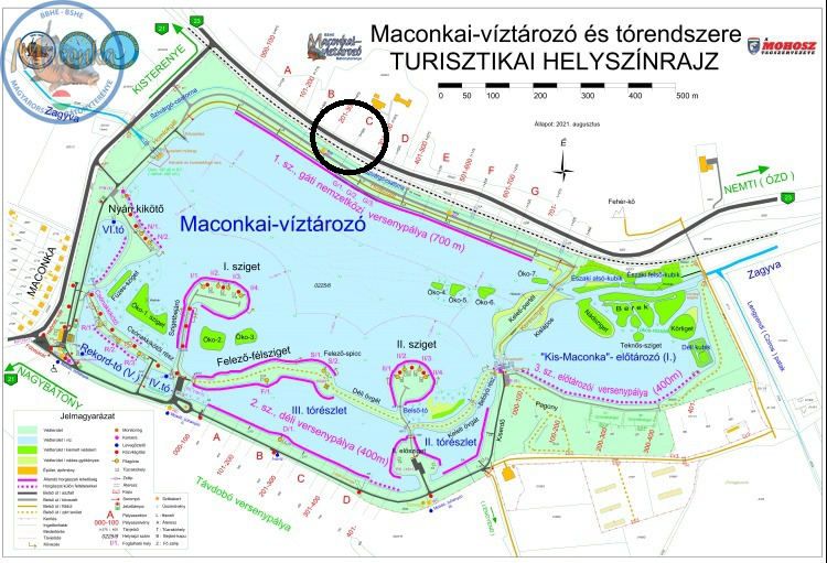 Jelöltem a térképen, hová szeretnénk menni. Az alacsony vízállás miatt 500 métertől nem lehet a parton halat meríteni fb oldaluk szerint.
