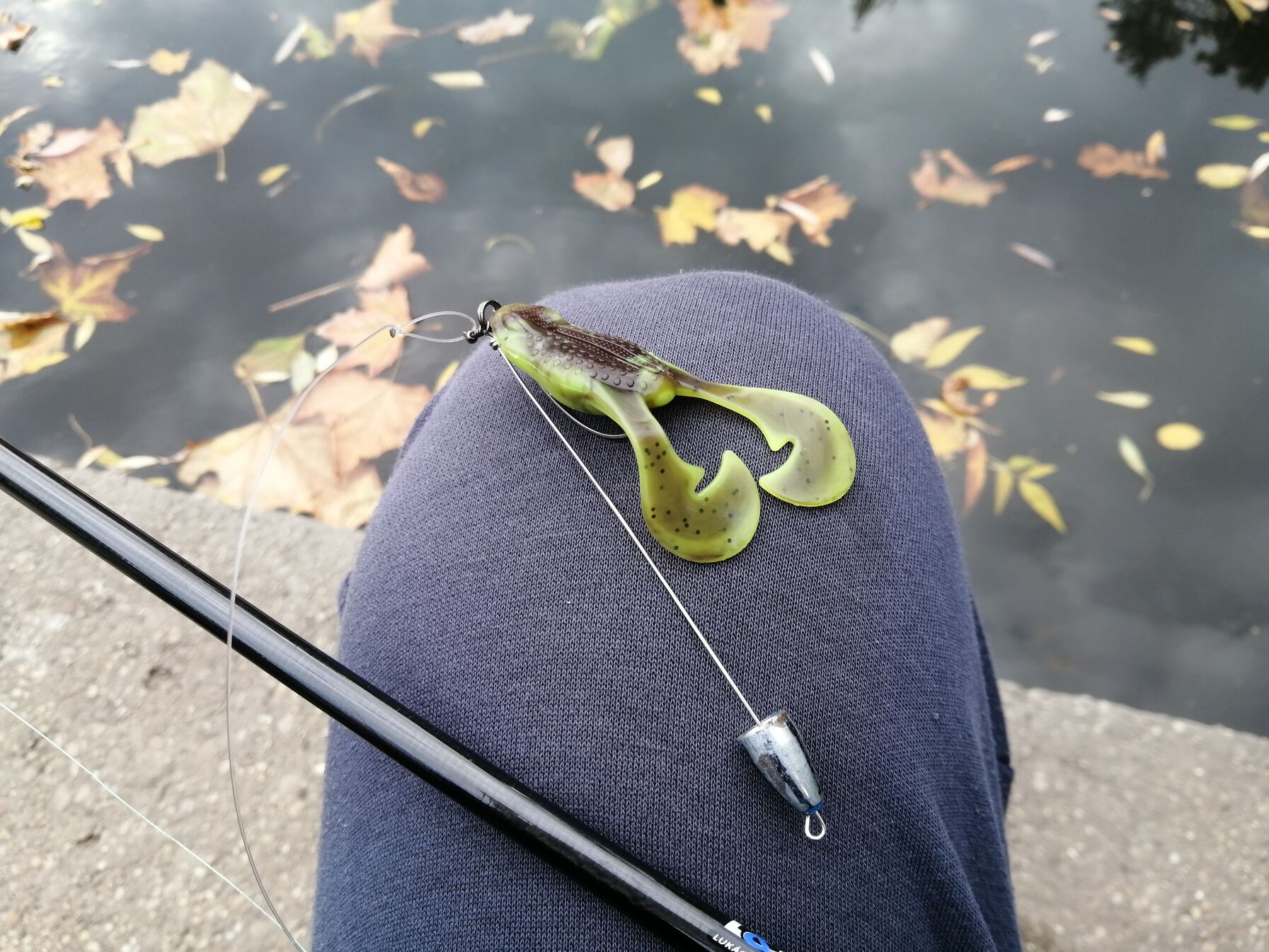 Délután végre kijutottam a Dunára. Nagy reményekkel vágtam neki egy úsztatós pecának, amit először próbáltam a nagy folyón, egy 7es spiccbottal. A Dráva utca magasságában kezdtem egy sóderes placcon. Kenyérzsák, meg némi etető begomócolva, földdel, fagyasztott csontival. Sajnos kapás nem érkezett, kb. 2 órán át. Fogtam cserébe vagy 3 nedves törlőkendőt meg betéptem kb. ugyan ennyi előkét.