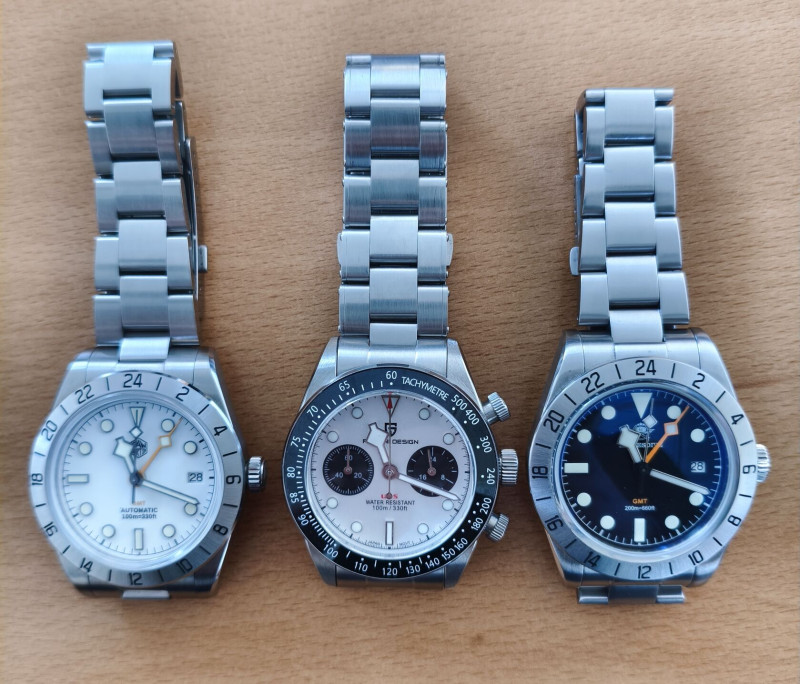 A Tandorio-ba szinte bele se tudok kötni. A Pagani-ba alig, esetleg egy picit nagyobb a kelleténél, de tetszenek a színei. Az Addiesdive-nál a márkanév és logo ami kicsit átlagon aluli, meg hogy a rehaut-ja mintha nem teljesen függőleges lenne. A Tourbillion-ba is max szubjektív szempontok alapján tudok belekötni. Mindegyik pontosan jár és nem körömletépős a csatjuk, hanem oldalról benyomósak.