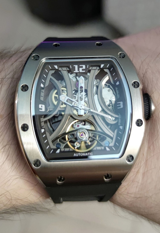 Persze az árszint is más, illetve ez főleg hátulról skeleton.Az én tourbillonom hátlapja sajnos nem ennyire skeleton, úgy voltam vele hogy szemből számít jobban.