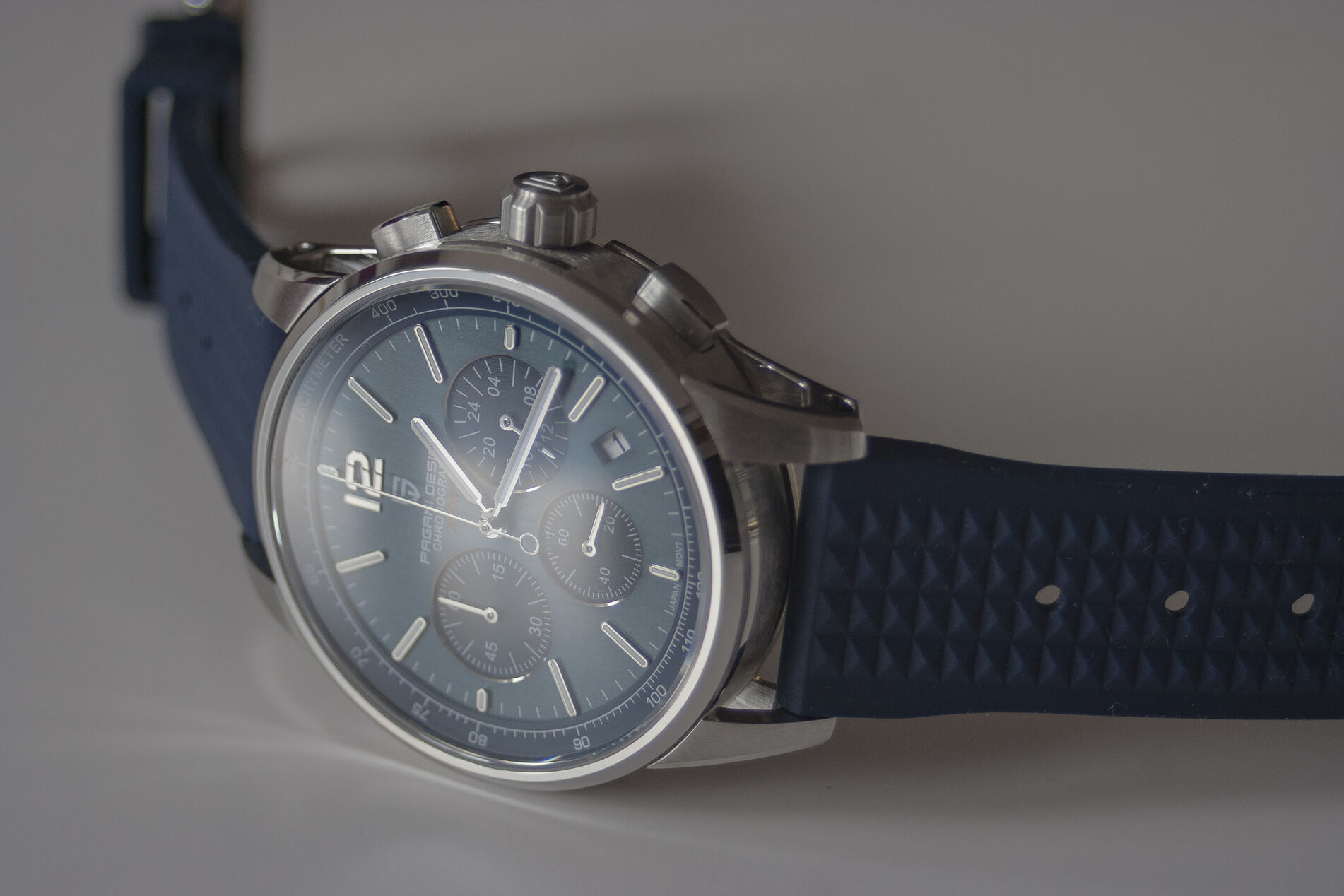 Szerintem sem elegáns annyira, de egy tömör végszem pedig túl sok lenne. Nem illik ehhez a tokhoz. Egy robusztusabb óránál nem kérdés, csinálják meg rendesen. De itt optikailag fejnehéz lenne az egész, oda az elegancia, a kecsesség. Ha engem kérdeznének, ezt hagyják a francba, rakjanak rá bőrt. Azt is lehet a tokhoz igazítani ha úgy jobb az összkép.