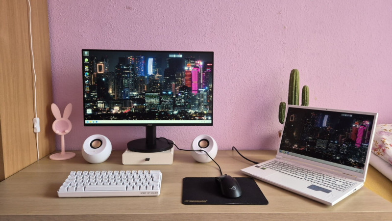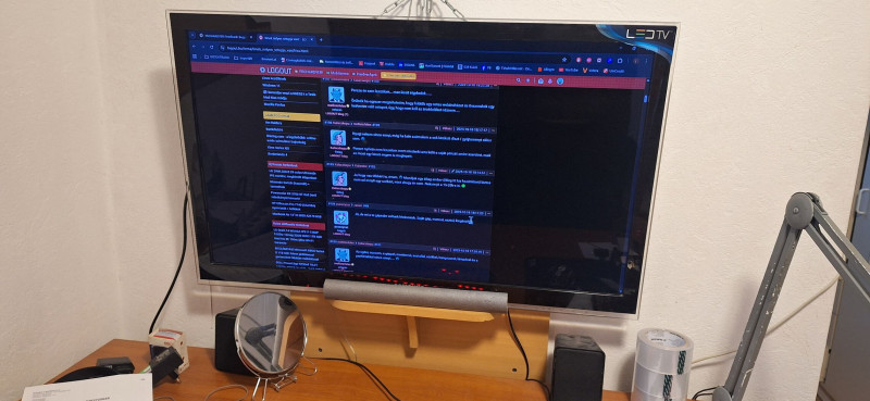 Amit hiányolok a képről, és ami nekem van, az 1-2 hub, 1-2 külső ssd, nekem a hang a hi-fi rendszerhez kapcsolódik. Nekem egy oledes asus noti van meg egy Lg wide monitor, logitech mx key S, attack shark egér