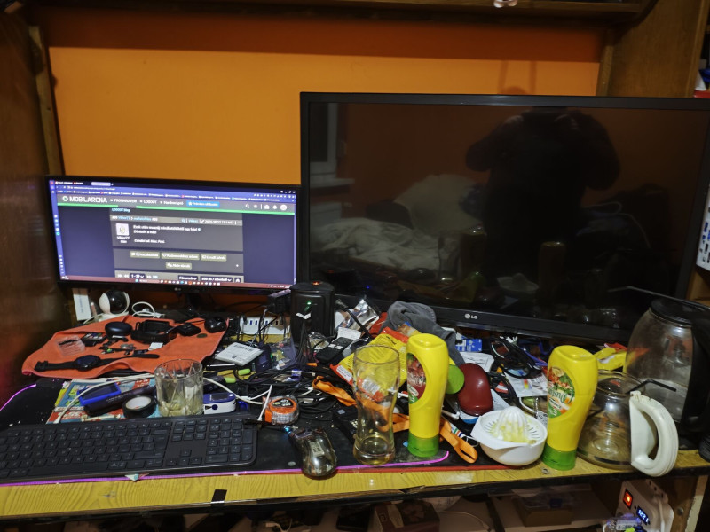 Jelenleg nincs olyan állapotban hogy lefotózzam, habár nincs is mit. Valami Samsung TV, 108 centi, 4K, Xbox Series S, van egy irodai Fujitsu pc média szervernek, telefon meg Xiaomi 15T Pro. Meg valahol a házban van egy laptop is, azt hiszem Lenovo Ideapad3, de már rég megvan, így lehet, hogy nem ez a pontos típusa.