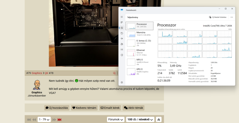 Bár fénykoromban (~ 25-30 éve), nekem is hasonló volt a "setup"-om (486-Pentium éra), csak ott kaják helyett hamutál volt (volt olyan, amikor a csikkek kb. 30 cm magasságban álltak ki a tálból, a számítógépház/bill/egér/monitor elefántcsont színe meg effektíve sárga lett a dohányfüsttől...
