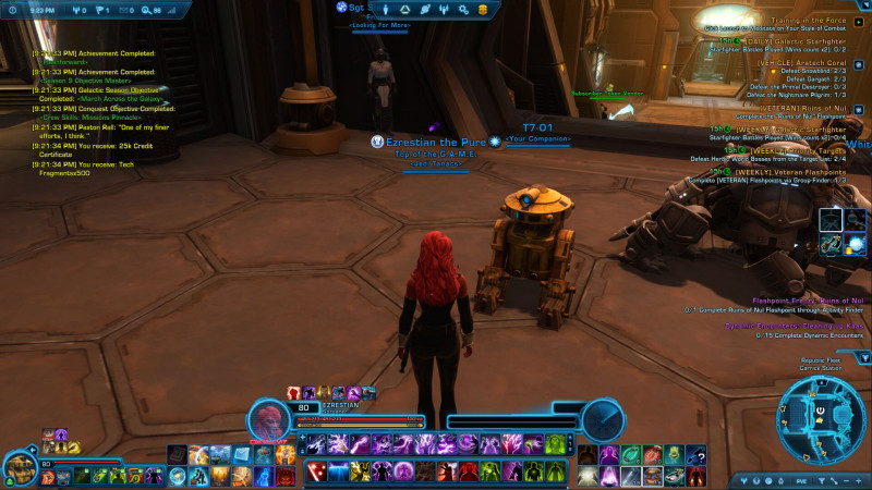 Ami a lényeg. Sztorit nem kell mindig tolni...Flashpoint és Heroic is klassz, meg űrharcra is ad sok XP-t. Hajódon a Space akármi, a galaxis mellett.