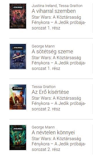 A Star Wars: "A Köztársaság Fénykora" sorozat a Jedi Rend virágkorában játszódik. A Baljós árnyak eseményei előtt évszázadokkal játszódó könyvek megjelenési sorrendben vagy formátum szerint is olvashatóak. Az I. fázisban (A Jedi fénye) új Jedi hősök jelennek meg, amint a Köztársaságot védik a Nagy Katasztrófa közepette, és felavatnak egy új űrállomást, a Starlight Beacont, körülbelül 200 évvel a Skywalker-saga kezdete előtt. A II. fázisban (A Jedi küldetése) még 150 évet lépünk vissza. Felfedezőkből álló galaxist tár fel, akik még mindig a Külső Perem bolygóinak egyesítésére törekszenek. A III. fázisban (A Jedik próbái) visszatér az I. fázis eseményei utáni évbe, egy izgalmas befejezésre, amelyben a Jedik erős új ellenségekkel szembesülnek, miközben a Köztársaság kaotikus időkben küzd a galaxisban.Nagy elnézést a kevésbé SW rajongóktól
