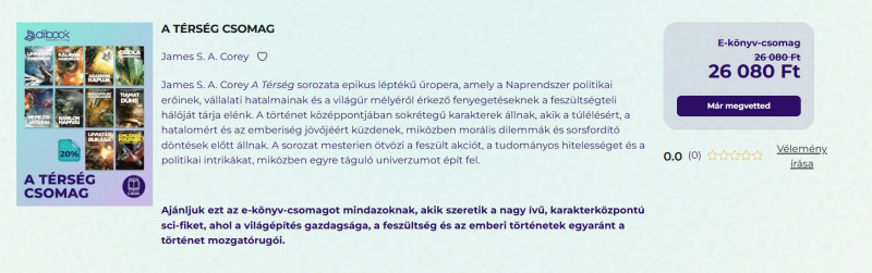 Az mondjuk a DiBook-on is látszik, ha például csomagot akarsz venni, akkor ott se kell megvásárolni azokat a köteteket, amiket már megvettél.