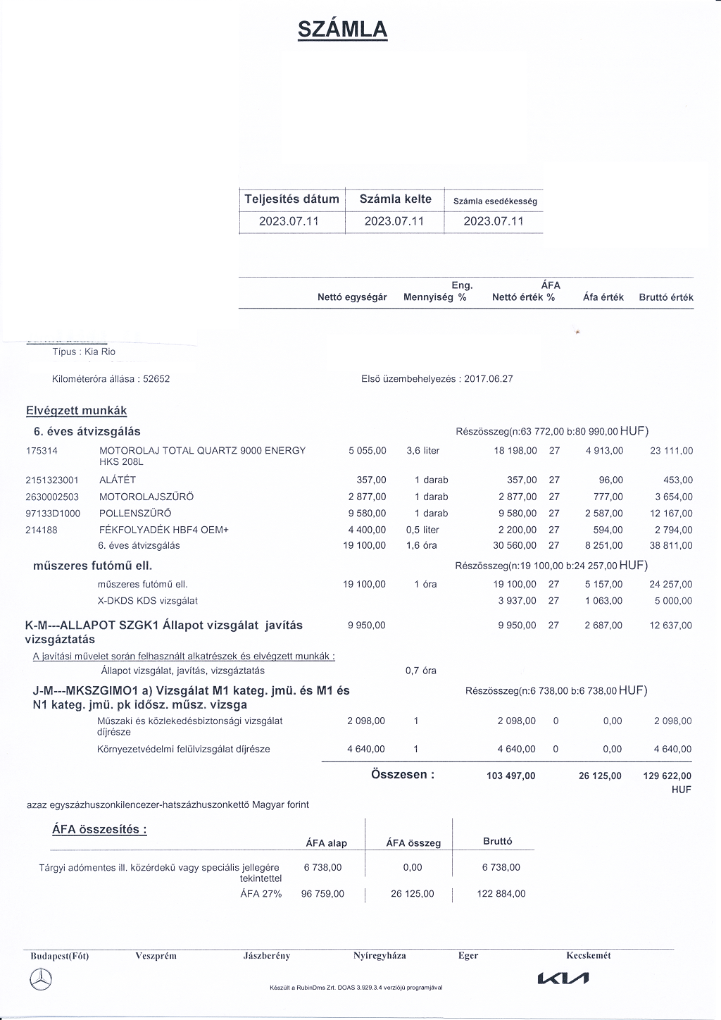 Letudtam a 7. éves márkaszervízt is a Rio-ra, alig lett drágább szerencsére... eddig ilyen 71-75 ezreket fizettem, most meg 86 lett.