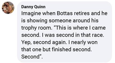 Bottas kb olyan mint Massa. Csipegeti a mestert időmérőn de versenyben mindig van köztük pár tized átlagban. -