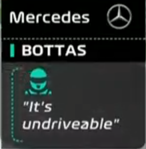 Ez a nehezebb szerintem mert az az érzésem, hogy ha tudna rajtolni és elmenne elől akkor még most sem szólnának rá, hogy engedjen el bárkit is, szabad lenne a verseny. 3 futam óta fél tizeddel kap ki qualyn ami már frusztráló lehet.