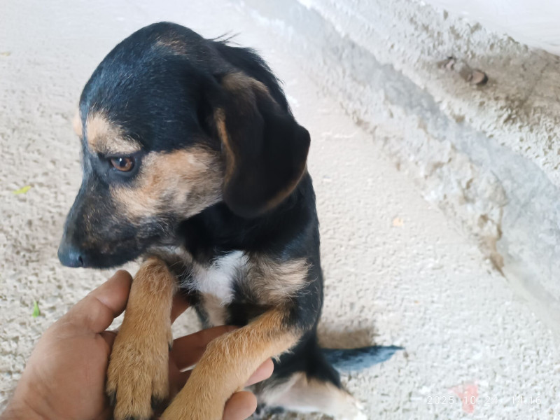 , borzasztó fél mindentől, mindenkitől, de ma már a nyakamig ugrált , a többi kidobott kutya elfogadta , nem bántják ( látjak , hogy kicsike ) !!
