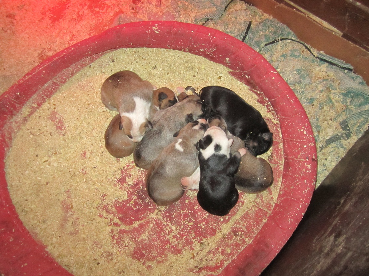 Na kezd nyílni a kiskutyák szeme, úgy néz ki összesen egy fiú van köztük.