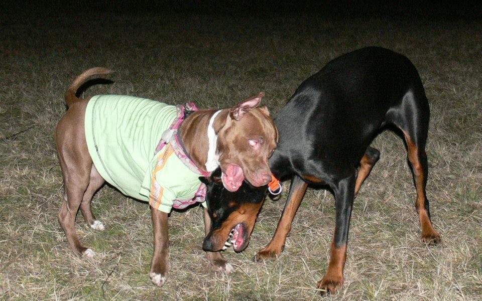 Pórázzal kapcsolatban meg, volt már harapás a póráz miatt. Szájkosarat is próbáltuk... Ezekkel a közelébe se lehetett menni. Morgás, vicsorgás és édesapám arcát harapta meg, ez lett a vége.Suzynak semmi gondja nincs ilyen téren. Foglalkoztunk vele, szót fogad... csak néha azért nem jön oda, mert a másik már morog rá.